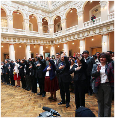 Morales ratificó el domingo a 17 de sus colaboradores y posesionó a los nuevos titulares de Desarrollo Productivo y Economía Plural, Ana Teresa Morales; Medio Ambiente y Agua, Julieta Monje Villa, e Hidrocarburos y Energía, José Luis Gutiérrez Pérez.