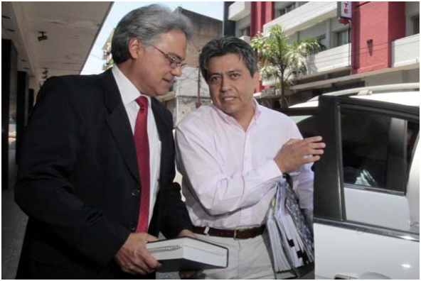 El ex gobernador del departamento boliviano de Tarija, Mario Cossío (d) a su llegada para comparecer ante la Comisión Nacional de Refugiados (Conare), en Asunción, Paraguay – Efe Agencia
