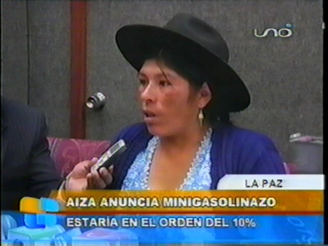 ‘Yo puedo hablar de la gasolina por lo menos puede subir 9 o 10%, porque es más necesario para nuestro país (¿Están de acuerdo las organizaciones sociales que pueda subir de a poco?) Sobre la gasolina estamos haciendo la socialización, las bases, las organizaciones sociales, sí afectan pero tarde o temprano vamos a tomar esta situación con el mismo decreto’, dijo Emiliana Aiza, jefa de bancada de Diputados del MAS.