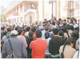Inscripción. Padres de familia concentrados en la puerta del colegio Abaroa, en Cochabamba.