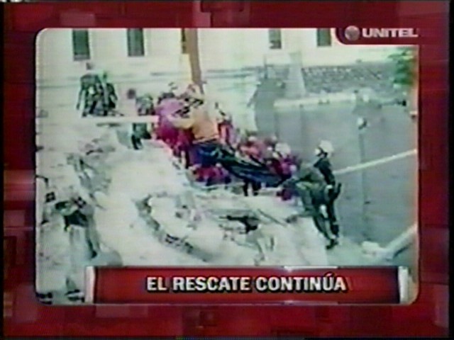 ‘El Estado ha respondido desde el primer instante este rescate, prueba de eso se rescató algunas primeras personas con vida desde el primer momento del desplome de este edificio. Tenemos un personal para ese tipo de siniestros altamente calificados. Se ha usado tecnología de punta. Lo que si hace falta es que los municipios se movilicen para fiscalizar este tipo de construcciones’ indica Sacha Llorenti. (Unitel)