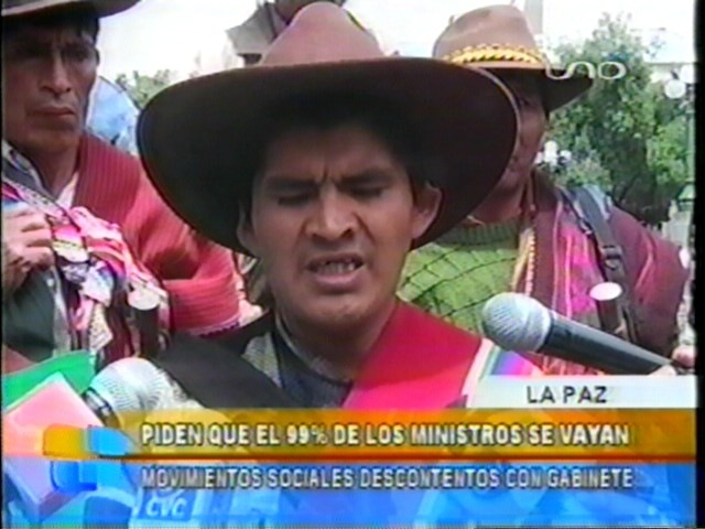 El dirigente del Consejo de Ayllus y Markas del Qollasuyo (Coinamaq), Rafael Quispe, señalaba sus observaciones sobre algunos de los ministros que necesariamente deben sus cargos del gabinete.
