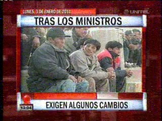 TRAS LOS MINISTROS, EXIGEN ALGUNOS CAMBIOS El Conamaq pide la cabeza del Ministro de Economía y del Ministro de gobierno. Le dicen a Evo que escuche el pedido de los campesinos (Unitel)