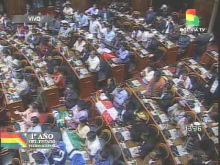 Al promediar las 13:30 horas de este sábado 22 de enero se dio inicio a la Sesión de Honor de la Asamblea Legislativa Plurinacional en homenaje al primer año de creación del Estado Plurinacional.