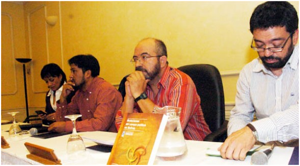 Presentación de la obra de cinco analistas políticos, ayer en Cochabamba.
