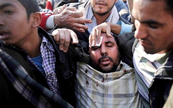 El ministro de Salud egipcio Ahmed Sameh Farid dijo el miércoles que una persona muríó al caer de un puente y 596 resultaron heridas en batallas campales entre partidarios y adversarios del gobierno en la plaza principal de El Cairo.