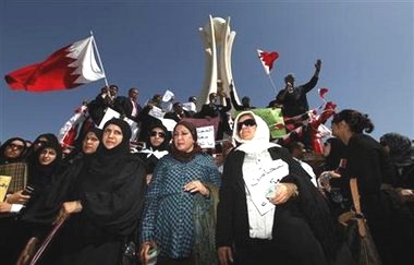 En el reino de Bahréin, miles de manifestantes -mayoritariamente chiíes- opositores al Gobierno se reunieron en una plaza en el centro de Manama, algunos pidiendo un cambio político y otros esperando conversar con los gobernadores suníes del país.