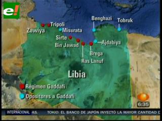 La ciudad estratégica de Brega, en el este de Libia, fue “depurada” de los rebeldes, anunció este domingo la televisión estatal del régimen de Muamar Gadafi. “La ciudad de Brega fue depurada de las pandillas armadas”, anunció el canal, citando a una “fuente militar”. Según un corresponsal de la AFP, decenas de rebeldes libios se retiraban el domingo de Brega luego de fuertes bombardeos de las fuerzas del régimen de Muamar Gadafi. La fuerzas leales al régimen tomaron el control del pueblo de Al Bisher, entre la ciudad de Al Uqaila y Brega, y avanzaban hacia esta ciudad que se encuentra a 80 km al oeste de Ajdabiya, informaron los rebeldes.