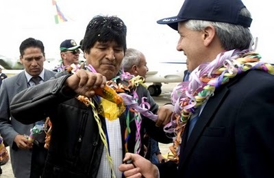 Ref. fotografía. Evo Morales y Álvaro García Linera en la ch’alla del pasado viernes 5 de febrero.