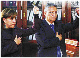 Leyla Medinaceli Monroy y Óscar Silva Flores juraron a sus cargos con el brazo derecho en el pecho y el puño izquierdo en alto, como una señal de lealtad al gobernante Movimiento Al Socialismo (MAS). El Deber