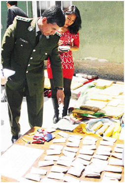 Foto: Orgulloso. René Sanabria muestra a la prensa el resultado de una de las requisas de droga. Fue en en 2008 en La Paz
