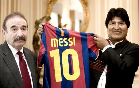 Morales, en un acto oficial, recibió la camiseta de manos del presidente del club Bolívar, Guido Loayza, quien se la entregó en nombre del entrenador argentino Guillermo Hoyos, que trabajó hace años en las divisiones inferiores del Barcelona y dice que impulsó la carrera de Messi.