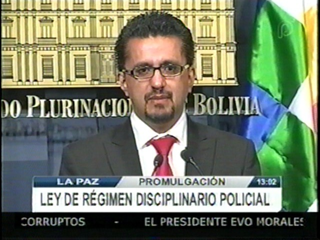 Radio noticias. Ministro Llorenti destacó la promulgación de la  Ley del Reglamento Disciplinario en la Policía Boliviana.