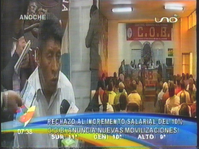 Radio y Tv matinal. LA COB anuncia una gran concentración en La Paz la próxima semana, Chávez le aconseja a Evo acudir al diálogo.