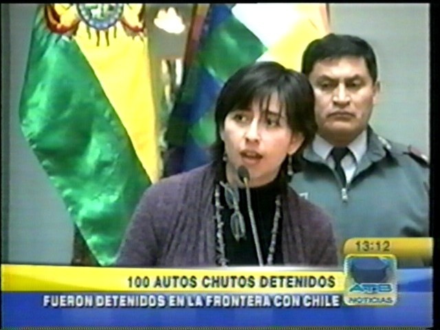 A partir de la promulgación de la ley no permite el ingreso de vehículos al territorio nacional. Entonces esa es nuestra área de acción y nos tenemos que limitar a lo que la norma dispone y estaremos atentos a cualquier otro requerimiento institucional que pueda plantear la Aduana Nacional’ manifiesta Cecilia Chacón, ministra de Defensa. (PAT)