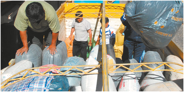 Labor. Personal de la Unidad de Industrialización de la Coca acomoda las bolsas de coca decomisadas para enviarlas a Coripata. Fue ayer.