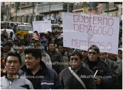 imageTrabajadores marchan en La Paz, en febrero de 2011; la protesta social es frecuente por diversos motivos. Foto ilustrativa AFKA