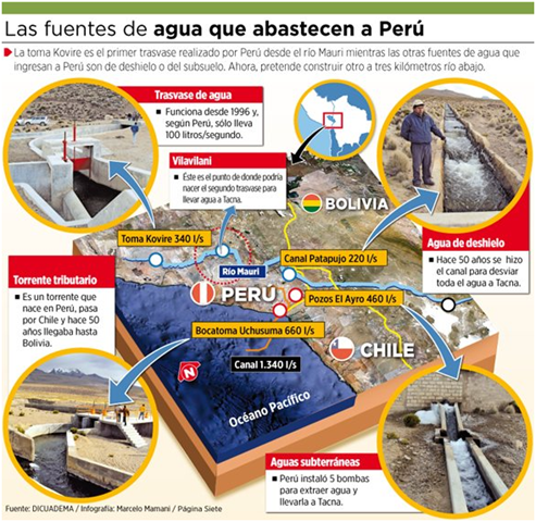 Página Siete constató que Perú no sólo se lleva agua del río Maure o Mauri para favorecer a Tacna, sino que tiene otras tres fuentes de abastecimiento; hace casi medio siglo dos de ellas beneficiaban también a territorio boliviano.
