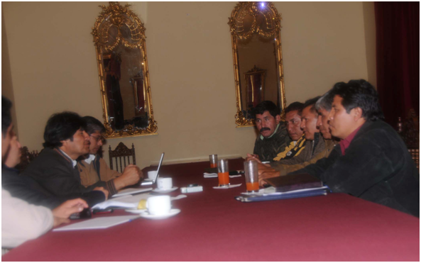 El presidente Evo Morales se reunió con los principales dirigentes de la Asociación del Transporte Libre y cumplió acuerdo de derogar DS en conflicto (ABI)