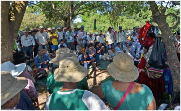 Decenas de indígenas durante una reunión cerca de San Ignacio de Moxos.