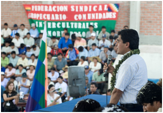 image El Presidente del Tribunal Supremo Electoral, Wilfredo Ovando, el pasado sábado, en el  ampliado de las Seis Federaciones de cocaleros del Trópico de Cochabamba, presididas por el Presidente Evo Morales, explicaba la metodología del voto en los próximos comicios electorales. Foto Presidencia de Bolivia/ Abi.