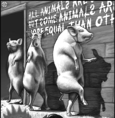 Entonces, el burro le aclara a los demás que, por lo visto, “todos los animales son iguales, pero algunos son más iguales que otros”.