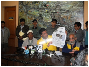 "Tenemos la publicación del día de hoy de Pagina Siete en la cual el señor Jorge Silva está señalando que se va a producir una desestabilización de la gestión del alcalde municipal de La Paz, pero además él está diciendo en esta publicación que el conflicto es una lucha política y no cívica. Alcaldes del MAS versus alcaldes del MSN con la bandera de límites", dijo Revilla mostrando una publicación en las que resaltaban las declaraciones del concejal.