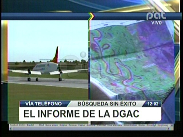Radio noticias. Continua la búsqueda del avión de la empresa Aerocom desaparecido en la víspera cuando intentaba aterrizar de emergencia cerca del aeropuerto de Trinidad. Últimos reportes señalan que el dirigente indígena chiquitano Eddy Martínez se encontraba en la lista de pasajeros.