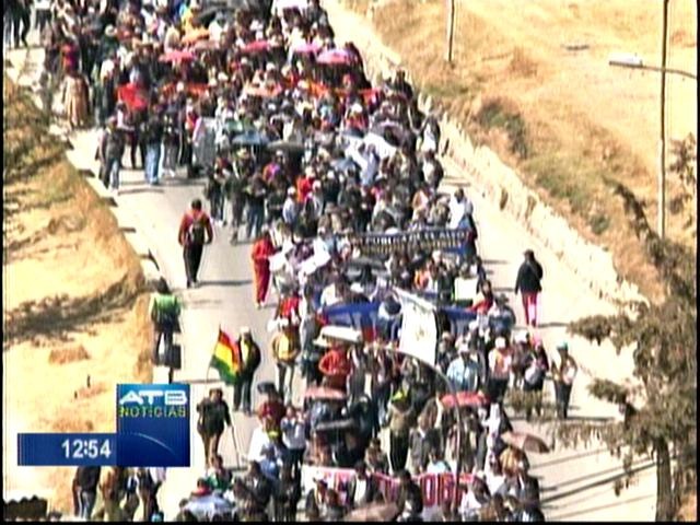 En la masiva marcha de protesta convocada por la Central Obrera Boliviana están participando la Federación Sindical de Trabajadores Mineros de Bolivia.