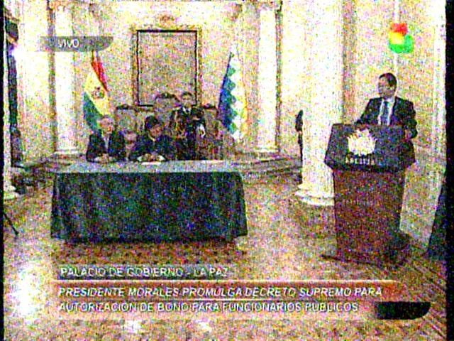 El Gobierno promulgo el jueves un Decreto Supremo para otorgar un bono con carácter excepcional de hasta un mil bolivianos a los servidores públicos que no se beneficiaron con el incremento salarial aprobado para esta gestión.