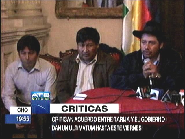 Acuerdo. Tarija levanta paro y bloqueos, Chuquisaca molesta da ultimátum al Gobierno