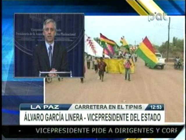 “Esa marcha ha llegado a La Paz tranquilamente. Seguramente es un teatro, digo yo, porque es del gobierno está marcha. Han sido recibido y por qué ahora, a última hora hay represión de la Policía para que se diga, yo pienso, yo opino que esto es un show para que el pueblo diga que también reprimiendo a los pobres indígenas, el premio va ser querer anular la ley y además querer darle las tierras del Tipnis a los cocaleros”. (Cadena A)