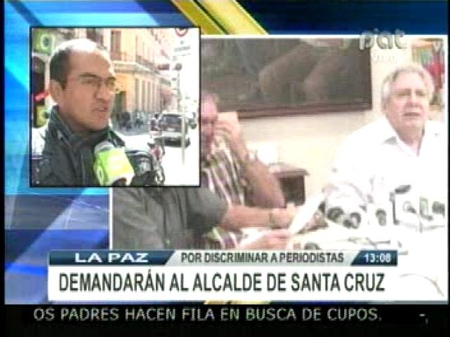 “Acto discriminatorio por obstrucción al trabajo, obstrucción a la libertad de prensa, obstrucción y denegación de acceso a la información y además de eso también estamos nosotros exigiendo en el memorial que el Fiscal del Distrito exija la conformación de una junta médica-psiquiátrica para que evalúe las facultades mentales del alcalde municipal, si está en condiciones o no de gobernar este municipio, el municipio más grande del país”. Manifestó un representante la Federación de Trabajadores de la Prensa de Santa Cruz.