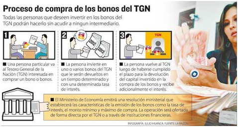 La nueva normativa establece además que la venta de los bonos en moneda nacional se realizará de forma directa a las “personas naturales” o a través de instituciones financieras, denominadas “Agentes Colocadores” que serán contratados por el Ministerio de Economía.