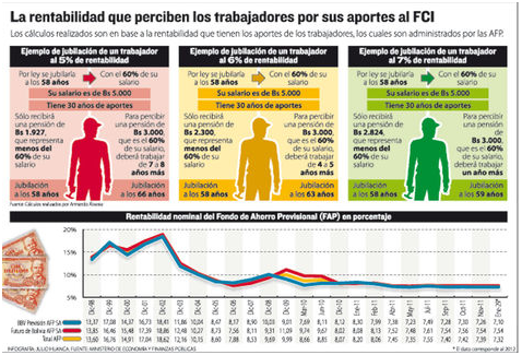 Hasta el 29 de enero de 2012, la rentabilidad que perciben los aportantes al Fondo de Capitalización Individual (FCI) para su jubilación continuó en descenso y se situó en promedio en 7,32% (ver infografía).