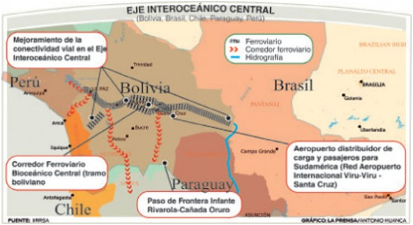 Hay ocho ejes para integrar Sudamérica. Brasil se conectará con el Pacífico por vías que pasarán por el territorio boliviano.