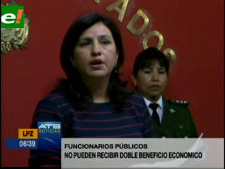 No hay sanciones, sino a través de una determinación de responsabilidad que lo determina la Contraloría; un proceso de auditoría, un proceso administrativo o civil inclusive si causa daños económicos al Estado", explicó Delgado, quien dijo que los funcionarios públicos no pueden cobrar dos sueldos que provengan del Tesoro General del Estado. Al respecto, el diputado Jaime Estívariz indicó que el bono de mil bolivianos que cobró fue donado a dos niños que participaron de la caravana de discapacitados, situación que se replicará, mencionó, todas las veces que cobre el mismo. "La solidaridad no puedo dejarla a un lado, tiene que empezar de mi persona, porque mi persona es la que ha pedido y exigido a todo el pueblo boliviano solidaridad. Voy a distribuir a los niños a los que alcance este bono", dijo el legislador.