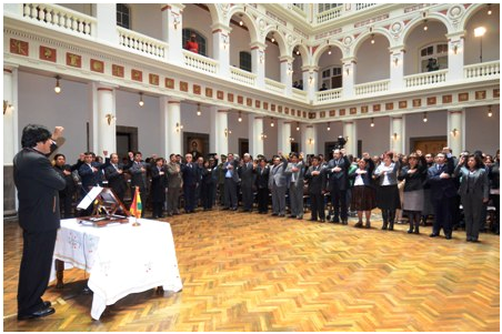 Ref. Fotografia: Gabinete. El lunes 23 de enero el presidente Morales posesionó a sus nuevos colaboradores.