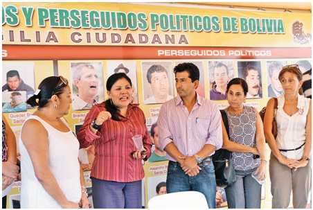 Los familiares de los considerados perseguidos políticos del gobierno de Evo Morales, recibieron el apoyo de la diputada de Convergencia Nacional, Norma Piérola, en su visita a Santa Cruz. En un acto sencillo dieron la bienvenida a la parlamentaria opositora en la carpa de los perseguidos que se encuentra instalada en la Brigada Parlamentaria Cruceña.