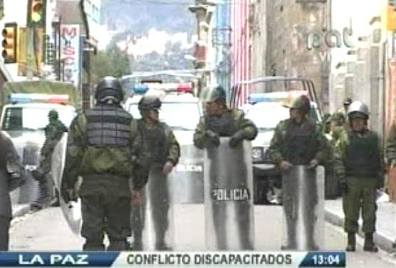 Radio noticias. Fuerte resguardo judicial impide la circulación de vehículos de personas hacia el centro político del país. MAS impone Ley del discapacitado que genera bronca y molestia en movilizados.(Erbol)