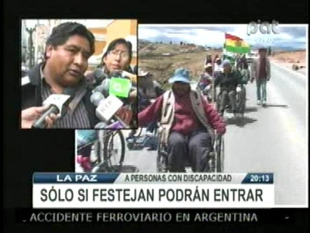 “Creo que el ingreso a plaza Murillo de los discapacitados cuando estos tienen un interés partidario, cuando más bien tienen un interés de romper más de tres años de negociación este interés es tendencioso que causa cierta inseguridad, por lo que el Estado boliviano debe tomar medidas preventivas. Si el ingreso de a la plaza Murillo fuera para celebrar una ley que protege de manera integral a los bolivianos eso puede ser permisible, caso contrario no” (PAT)