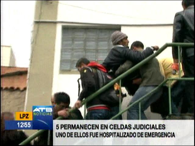 El director Departamental de La Paz de la FELCC, Roberto Mendoza detalló que las personas que se encuentran en dependencias del Ministerio Público son Miguel Mendoza Figueredo, Rubén Poma, Ruth Gutiérrez Mamani, Orlando Castaño Torres que llevaba un perro con el que agredió a los policías Luis Alberto Arauz Suárez y Martín Vela.