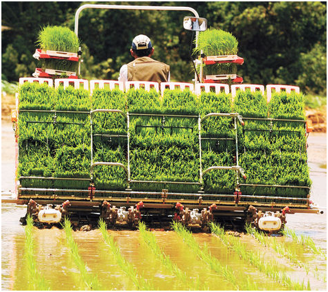 Okinawa. Un productor siembra arroz en sus tierras del norte cruceño. Foto: Archivo Ángel Illanes