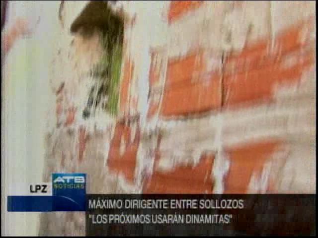 “Porque estamos en los 20 días hábiles de la huelga general indefinida, estamos en el octavo día de la huelga de hambre a nivel nacional, tenemos al rededor de 45 piquetes de huelga de hambre y estamos bordeando los 1.500 trabajadores en la huelga de hambre. Que resuelva este conflicto, si no hay respuesta en el transcurso de hoy o mañana o el fin de semana otros dirigentes vamos asumir las medidas de presión del tapiado, pero con dinamita en mano, y va ser el gobierno el culpable. Hay bronca contenida, pero no es debilidad” (Red Uno)