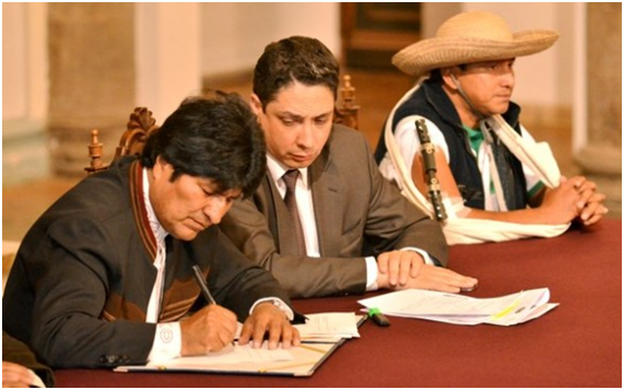 Ref. fotografía. El presidente firma la ley en el acto realizado en la noche del lunes en Palacio de Gobierno. 23 de octubre de 2011. La Razón / archivo