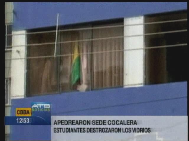 Cochabamba.- Estas declaraciones fueron manifestadas después de que estudiantes de Medicina rompieran a su paso los vidrios del edificio de las Seis Federaciones del Trópico, además de agredir los ambientes de la Gobernación y de la Cancillería.