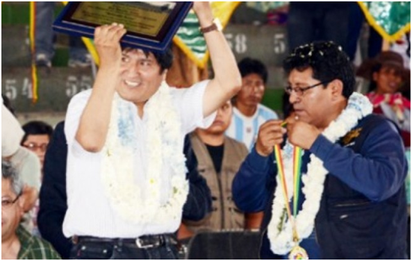 image El presidente Evo Morales y el dirigente Efrain Chambi en un acto público en Cochabamba/ Foto archivo.