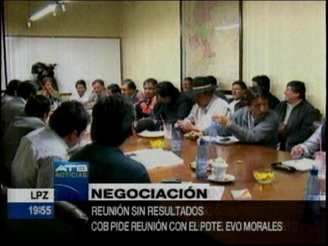 Tv noticias. La reunión no arrojó resultados, trabajadores rompieron diálogo con los ministros, piden encuentro con Evo.