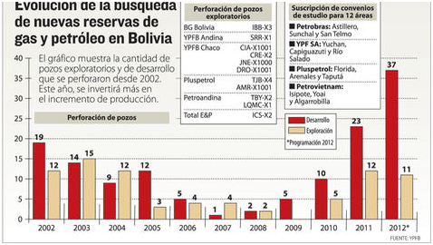 RECURSOS. De las 56 áreas aprobadas para YPFB en 2010, 12 se encuentran con contratos aprobados; cinco esperan el permiso del Legislativo; 23 se encuentran con convenios de estudio concluidos, en ejecución o en negociación para la firma de contratos de exploración y explotación; y 16 se hallan sin compromiso.