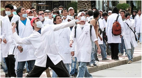 Los mayores problemas ocurrieron ayer en la ciudad de Cochabamba, donde estudiantes de medicina de la universidad estatal apedrearon la fachada y destrozaron varias oficinas de la Gobernación, controlada por el Movimiento Al Socialismo (MAS).